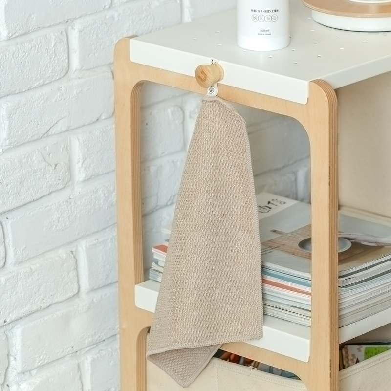 我們選擇兩款能融入日常生活的顏色,奶茶與抹茶色,柔和低飽和的顏色不容易看膩以外,直接掛在廚房或浴室也能融入各種裝潢不突兀。
