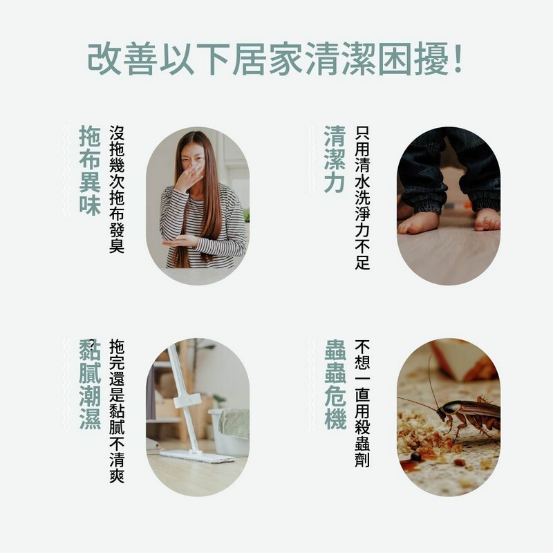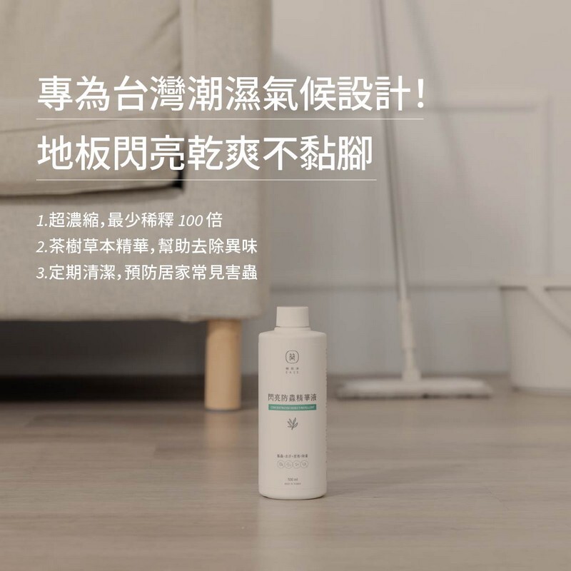 🌿閃亮地板:草本茶樹,成份為有除菌效果的小農茶樹純露及天然驅蟲精油。