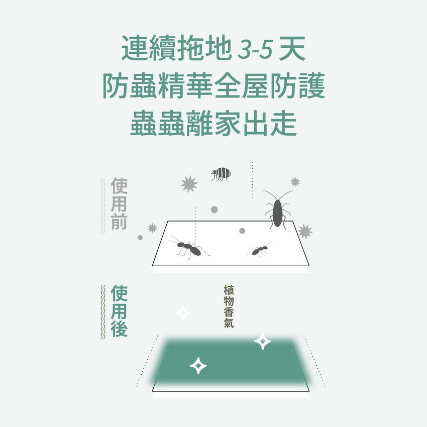 🌿閃亮地板:草本茶樹,成份為有除菌效果的小農茶樹純露及天然驅蟲精油。