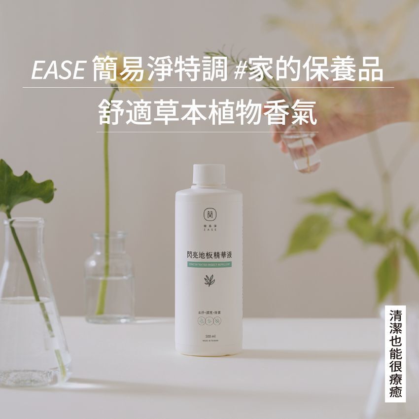 EASE簡易淨與台灣非農藥防治團隊合作,選擇適合的植物如:薰衣草、茶樹、檸檬、貓薄荷(荊芥)等添加進清潔劑中。藉由保持環境清潔,以清掃代替使用環境用藥,預防居家常見害蟲。