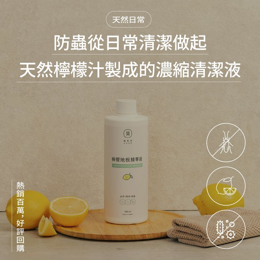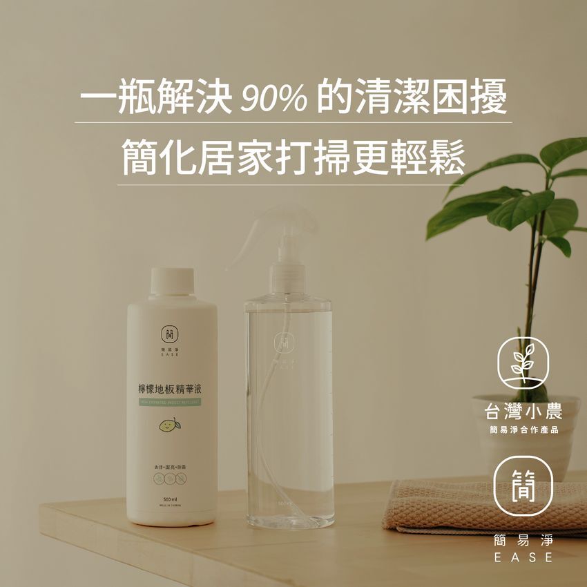 EASE簡易淨與台灣非農藥防治團隊合作,選擇適合的植物如:薰衣草、茶樹、檸檬、貓薄荷(荊芥)等添加進清潔劑中。藉由保持環境清潔,以清掃代替使用環境用藥,預防居家常見害蟲。