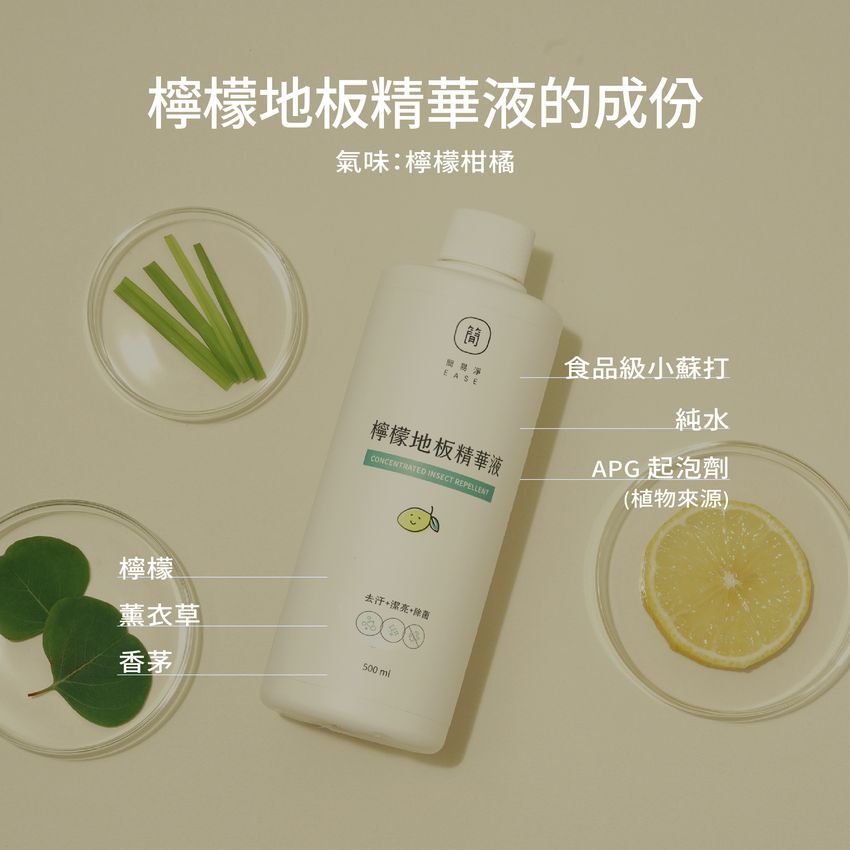 🌿閃亮地板:草本茶樹,成份為有除菌效果的小農茶樹純露及天然驅蟲精油。