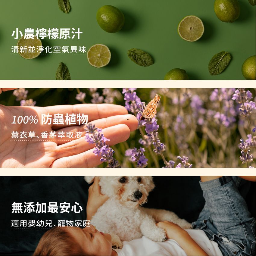 🍋檸檬精華:清爽檸檬,小農檸檬汁及天然驅蟲精油,加強去除異味並淨化空氣。
