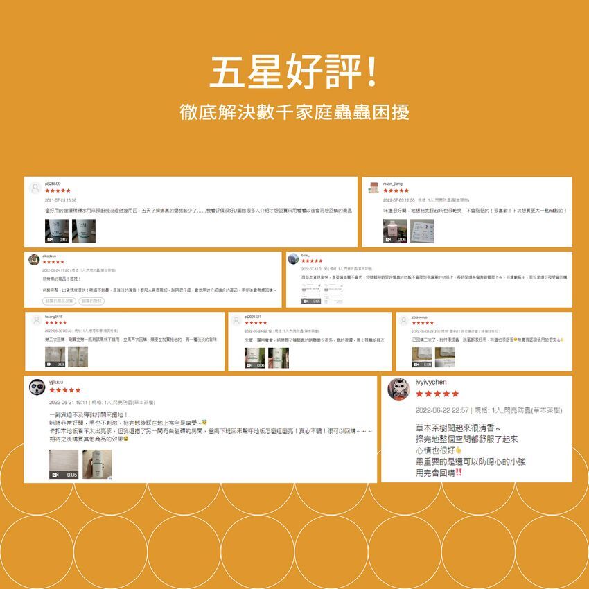 A1:全系列「無添加」任何化學殺蟲藥劑(如除蟲菊化合物、硼酸…)