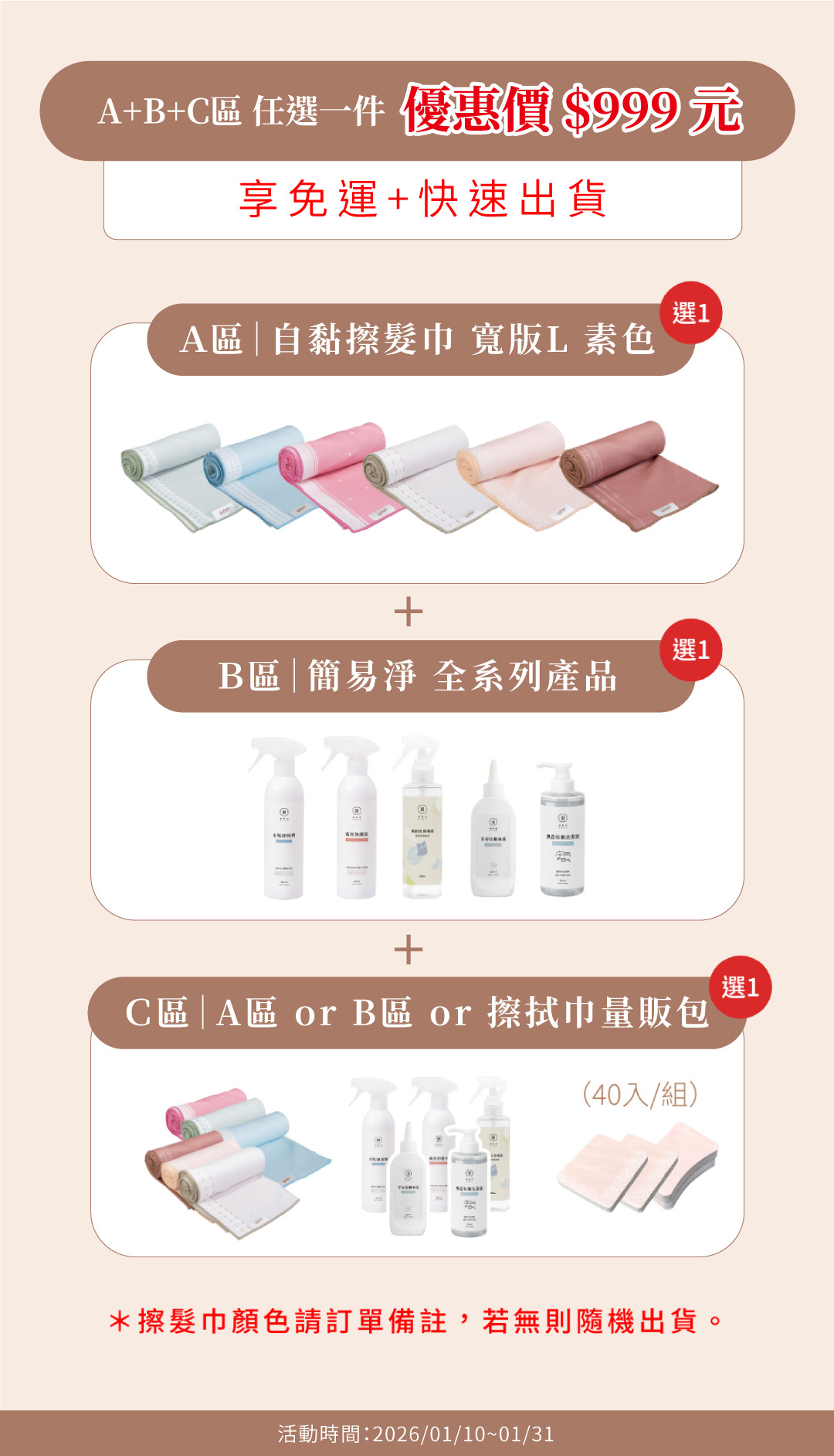 任選三件(A+B+C) 優惠 $999|再享免運費(國內限定)!