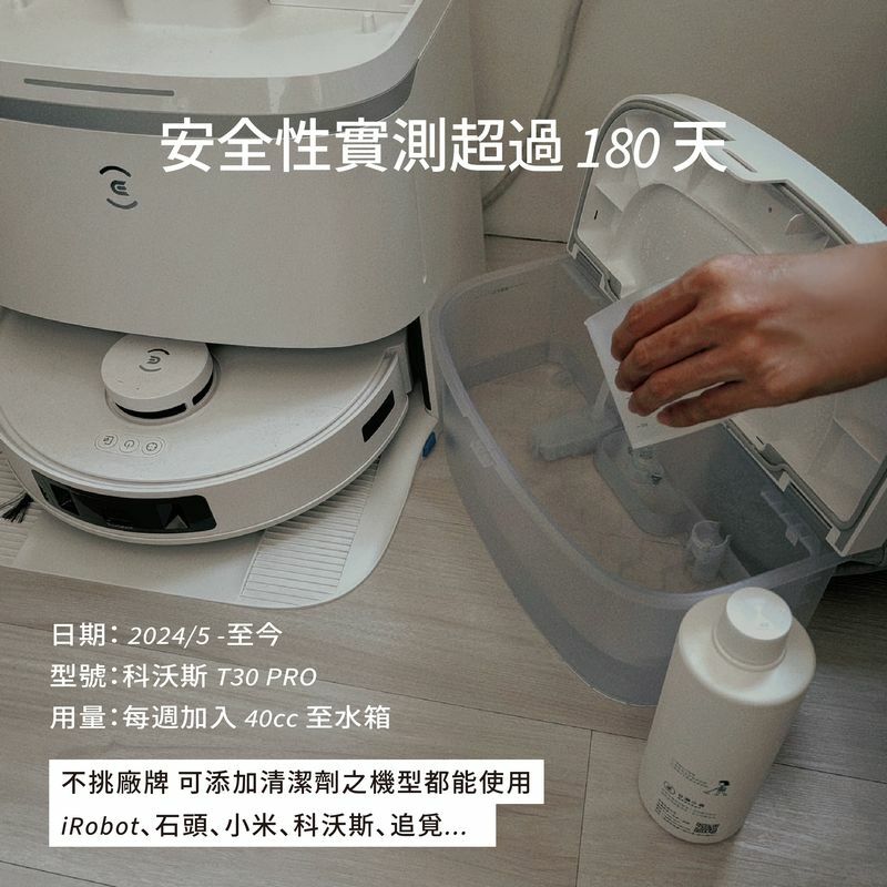 掃拖地機專用,中性溫和,無泡性,適用「可添加清潔劑」之各廠牌機型。